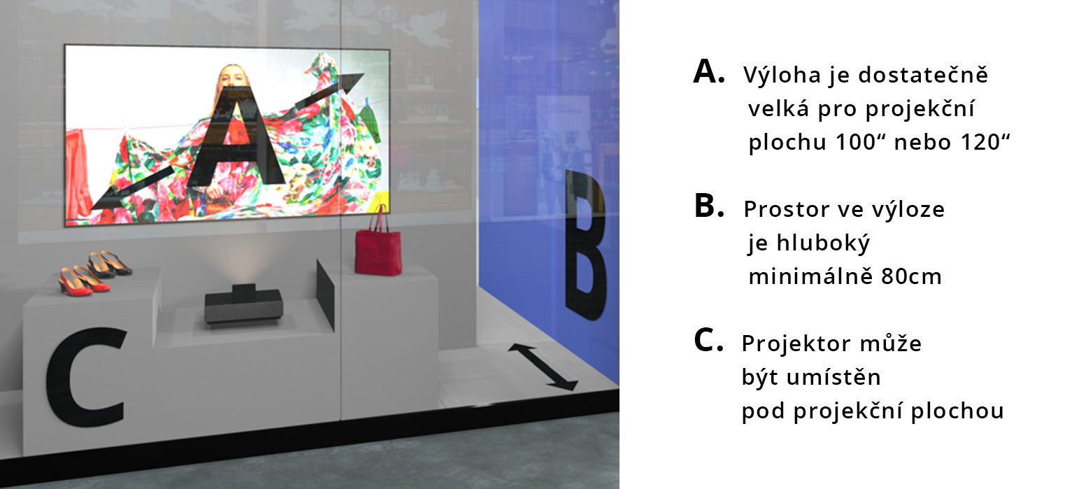 Digitalizace výloh je budoucnost oživení prodejen a je navržena pro všechny, kteří chtějí více inovovat a hledat interaktivní zapojení zákazníka do příběhu vlastní značky. Náš klient může od tohoto řešení očekávat přímé zapojení pozornosti zákazníka, a to ještě před vstupem do prodejny. Řešení perfektně plní svůj účel v obchodních centrech, kde jsou výlohy zásadním prvním kontaktem se zákazníkem, a to i na místech s pravděpodobnou vyšší světelností. Unikátnost technologie je právě v naší ALR projekční ploše, která je tvořena 3D trojúhelníky a na které je zespodu a ultra krátké vzdálenosti promítán obraz z výkonných laserových projektorů Epson. Projekční plocha má schopnost téměř 100% pohltit dopadající světlo z okolí a výsledný obraz je tak perfektně detailní a jasný.