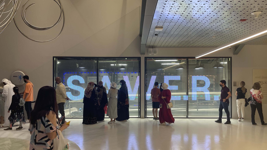 Cílem UCEEB pro prezentaci v rámci EXPO DUBAI 2020 bylo přiblížit projekt S.A.W.E.R potenciálním zájemcům co nejjednodušší formou a tou vizuální projekce určitě jsou. Otázkou ale bylo, jak zaujmout jinak? V dnešní době, kdy zákazník viděl na výstavách opravdu již skoro všechno, a kdy obvyklé reklamní tahy a poučky staré školy přestávají fungovat, je potřeba inovovat a sahat po modernějších a neotřelých řešeních. Každý z nás má již vytvořenou jistou dávku imunity pozornosti a je známým faktem, že pokud při prezentaci zachytíme pozornost člověka v rámci sdělování nějakého obsahu, je ochotný s námi strávit maximálně 2 sekundy své opravdové pozornosti. Představme si, že toto je náš čas, kdy máme možnost návštěvníka expozice opravdu zaujmout a vtáhnout do příběhu. Buď ho získáme, nebo ztratíme. Co máme udělat jinak, pokud potřebujeme velkému a stále proudícímu obecenstvu návštěvníků neotřele odprezentovat poměrně složitý projekt, jednoduchou formou, a tak, aby byl obsah prezentace pochopitelný, a ještě u kolemjdoucích vyvolal pozitivní emoce a chuť se s projektem seznámit blíže? Spolu s UCEEB věříme, že přesně toho je schopná technologie transparentního LED Filmu ve spojení s funkcí didaktické projekční stěny, kdy tvůrci systému S.A.W.E.R. vytvořili v rámci společné vize ideální spojení výstavního prostoru s prezentační technologií TLED Film.