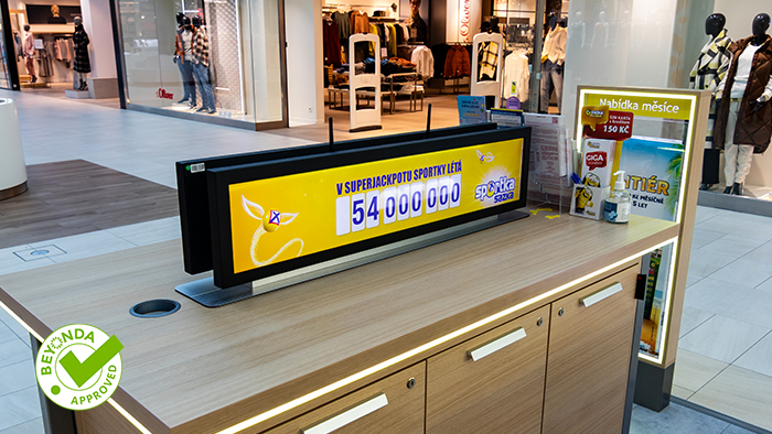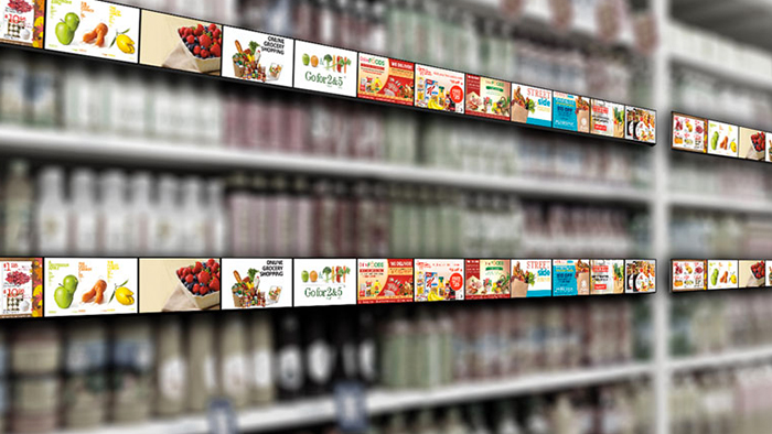 jako informační medium u prodejních regálů a stojanů, kde lze ve