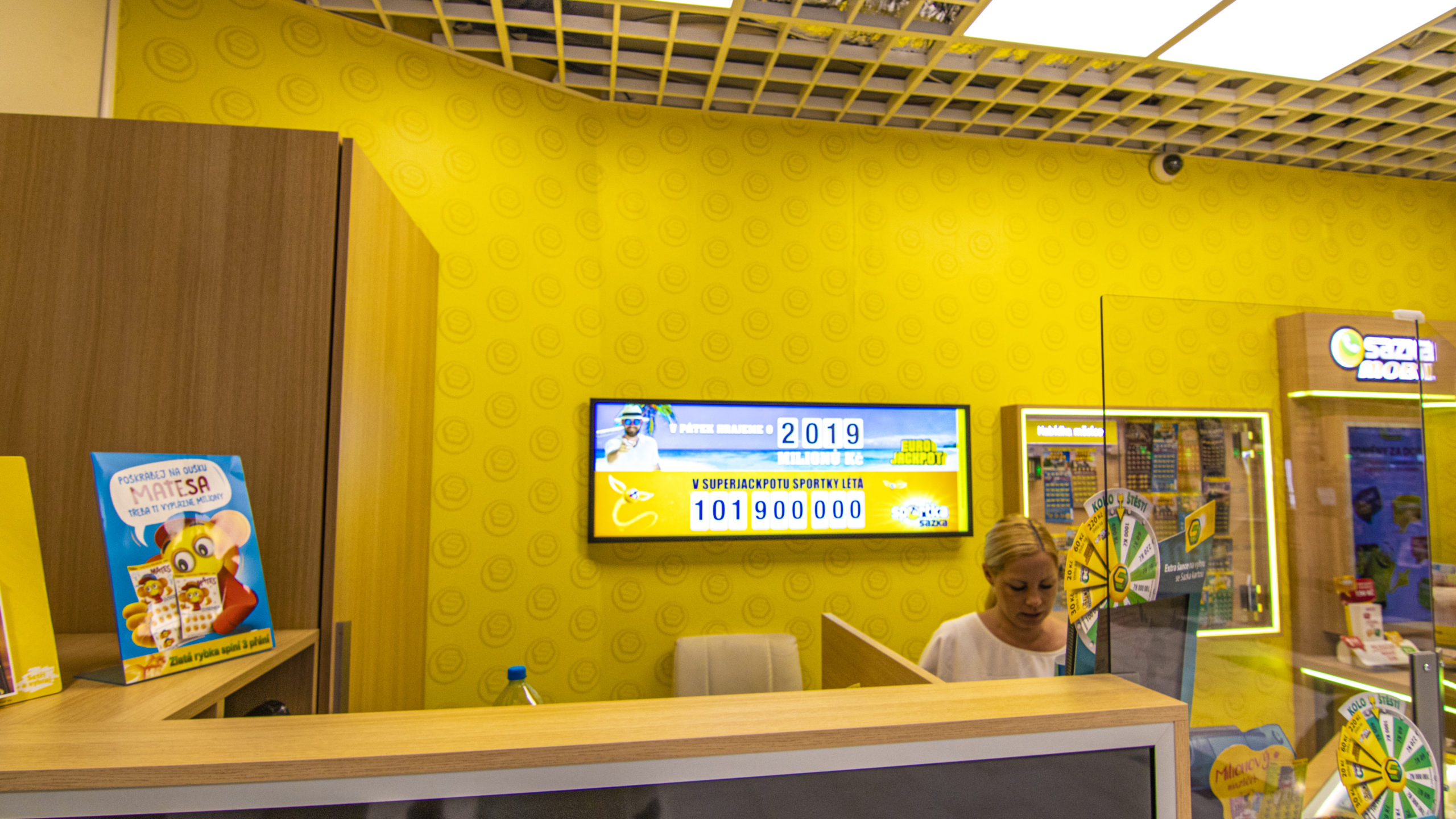 SAZKA for displaying JACKPOTs - one of the main CALL TO ACTION information at branches, was looking for a way to display so that the displayed JACKPOT was clearly visible and the display did not need as much space. 42 inches is a big screen, but not 42 inches 16: 9 like a 42 inches STRETCHED LCD Display.