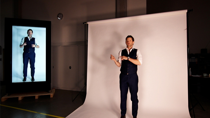 za ním. Díky tomuto použití displejů je možné dosáhnout efektu, kdy se